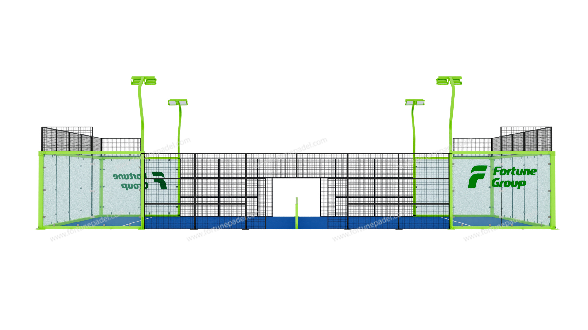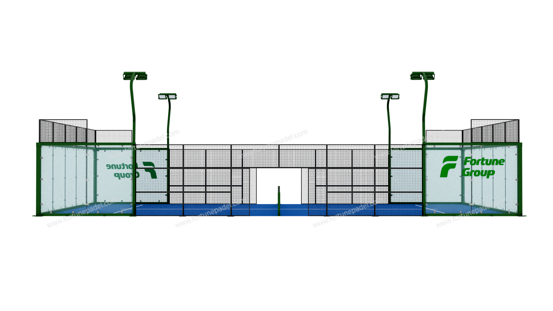 La cancha panorámica Panorámica FX-P02Q no solo proporciona condiciones ideales para los partidos profesionales, sino que también estimula el potencial competitivo de los atletas mientras ofrece una experiencia de visualización inigualable para los espectadores. Esta corte es un testimonio de la innovación moderna de las instalaciones deportivas, combinando perfectamente la funcionalidad, la durabilidad y la estética visual. Ventajas de la Panorámica Padel Court de Fortune—— Proporcionar servicio de garantía de 5 años; Estructura soldada líder en la industria y una pared de vidrio de 12 mm de espesor para garantizar el nivel de calidad de toda la cancha panorámica de Padel; Admite una variedad de opciones personalizadas, como con o sin dosel, color de poste de luz, etc.